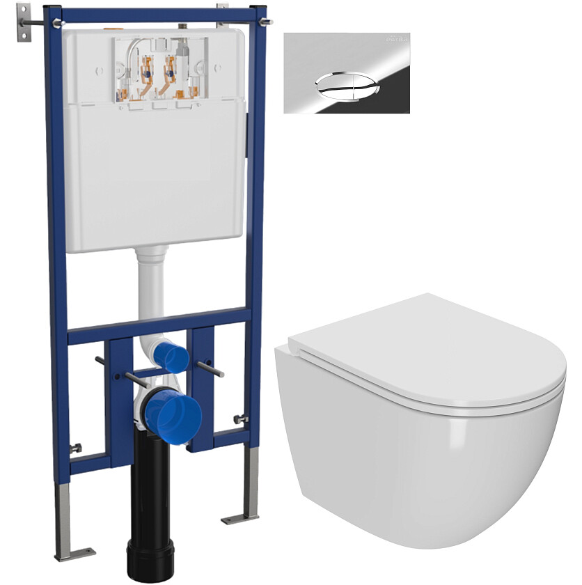 Унитаз подвесной Bauedge Bau Dream с инсталляцией Ewrika ProLT 0026-2020 и кнопкой смыва Ewrika 0051 - изображение 1