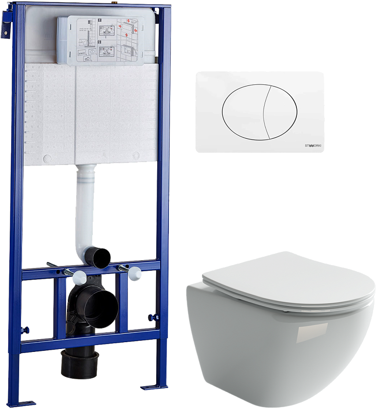 Комплектация: чаша унитаза, крышка-сиденье, система инсталляции, бачок скрытого монтажа, комплект креплений, панель шумоизоляционная, кнопка смыва, инструкция - 2 шт.