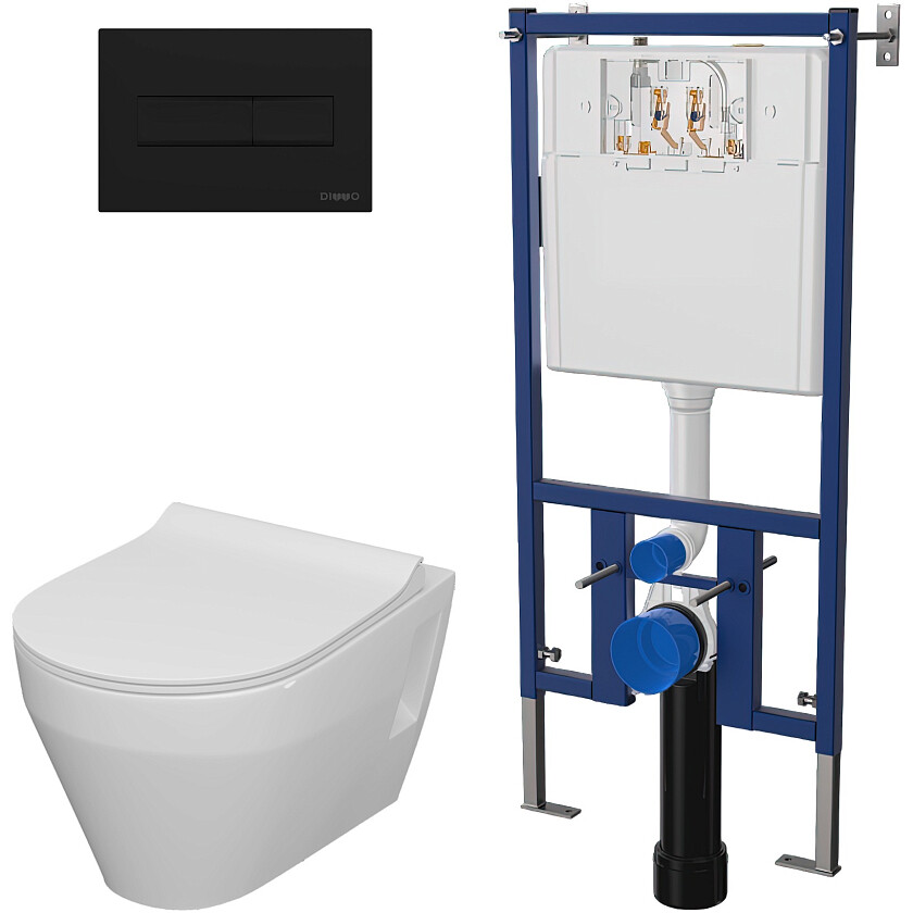 Комплектация: чаша унитаза, крышка-сиденье, система инсталляции, бачок скрытого монтажа, комплект креплений, панель шумоизоляционная, кнопка смыва, инструкция - 3 шт.