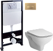 Унитаз белый Stworki "Берген" HCBRG1700SC с инсталляцией ProLT 0026-2020 и золотой кнопкой 0053