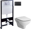Унитаз белый Stworki "Берген" HCBRG1700SC с инсталляцией ProLT 0026-2020 и черной кнопкой 0044