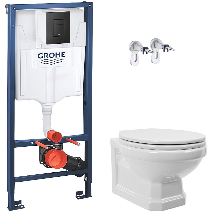 Комплектация: чаша унитаза, крышка-сиденье, система инсталляции, бачок скрытого монтажа, комплект креплений, переходник, кнопка смыва, инструкция - 2 шт.