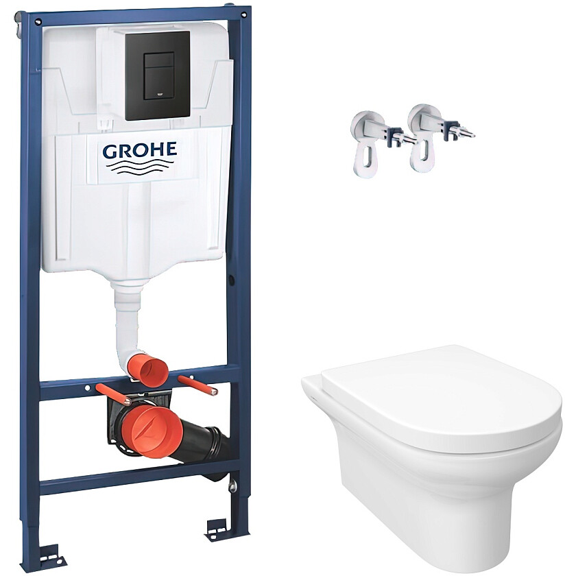 Комплектация: чаша унитаза, крышка-сиденье, система инсталляции, бачок скрытого монтажа, комплект креплений, переходник, кнопка смыва, инструкция - 2 шт.