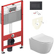 Комплектация: чаша унитаза, крышка-сиденье, система инсталляции, смывной бачок, комплект креплений, крепление для унитаза, комплект защитных заглушек, комплект патрубков с резиновыми манжетами, фановый отвод, шаблон для отделки отверстия под панель смыва, звукоизолирующая прокладка, кнопка смыва, инструкция - 3 шт.