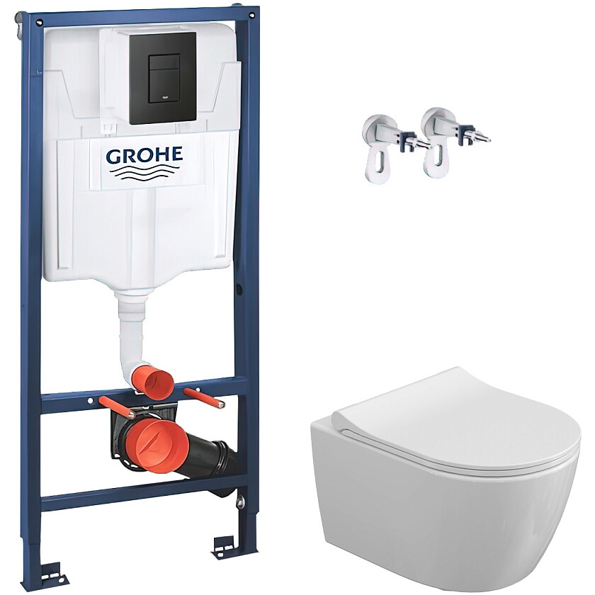 Комплектация: чаша унитаза, крышка-сиденье, система инсталляции, бачок скрытого монтажа, комплект креплений, переходник, кнопка смыва, инструкция - 3 шт.