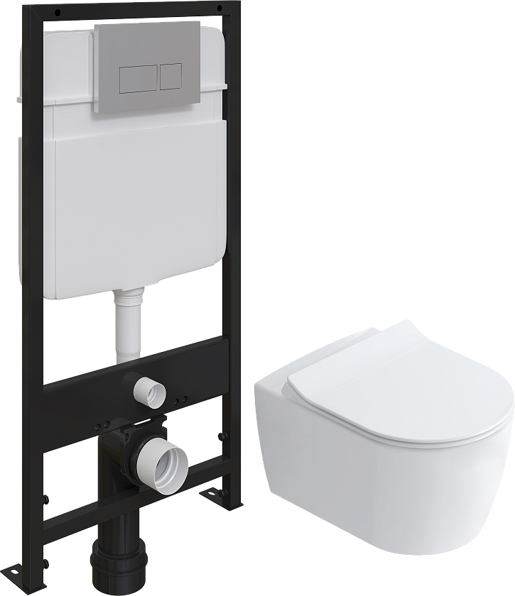 Комплектация: чаша унитаза, крышка-сиденье, система инсталляции, бачок скрытого монтажа, комплект креплений, кнопка смыва, инструкция - 3 шт.