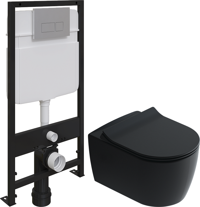 Комплектация: чаша унитаза, крышка-сиденье, система инсталляции, бачок скрытого монтажа, комплект креплений, кнопка смыва, инструкция - 3 шт.