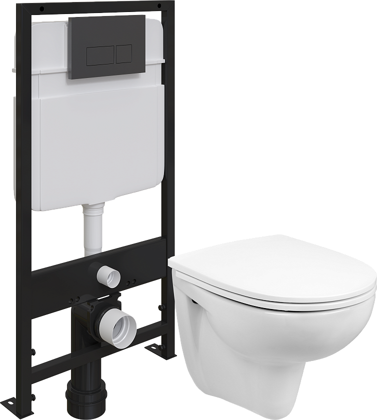 Унитаз белый Wanfald Lauta 47302100005 с инсталляцией ProLT 0026-2020 и черной кнопкой 0044 - изображение 1