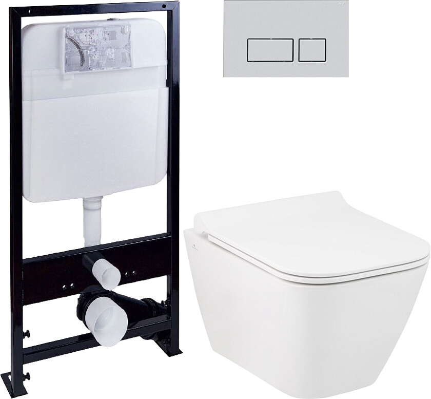 Система инсталляции - 1 шт. Бачок скрытого монтажа - 1 шт. Комплект креплений - 1 шт. Кнопка смыва - 1 шт. Комплект креплений - 1 шт. Чаша унитаза - 1 шт. Крышка-сиденье - 1 шт. Комплект креплений - 1 шт. Инструкция - 4 шт.