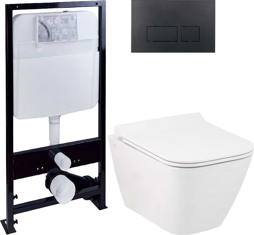 Унитаз в комплекте с инсталляцией EWRIKA ProLT 0026-2020 + Кнопка смыва EWRIKA 0044 черная матовая