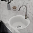 Классическая круглая мойка без крыла компактного размера позволяет установить ее в узкий кухонный модуль. Глубокая чаша вмещает большое количество комплектов посуды.