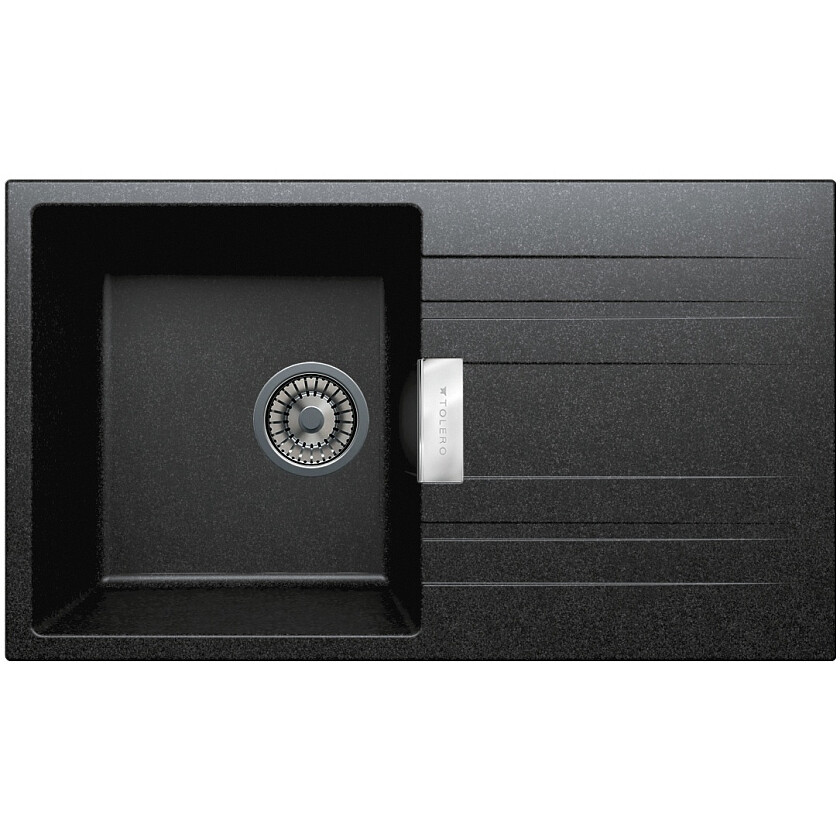 Если в стандартных мойках вы можете увидеть отверстие слива, то здесь перелив скрыт под накладкой из нержавеющей стали.