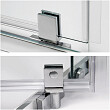 - Возможность регулировки бокового профиля позволяет компенсировать неровности стен и настроить размер душевого уголка под индивидуальный интерьер.