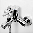 Смеситель для ванны имеет керамический поворотный переключатель. Он работает при нулевом давлении. Для переключения на душ или излив необходимо повернуть переключатель в любую сторону на 90°.