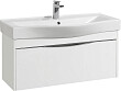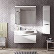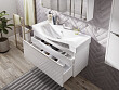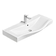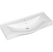 Широкий бортик под смеситель не дает воде затекать за раковину и предупреждает образование плесени и грибка. Передний край раковины выступает аккуратным полукругом за фасад тумбы и придает гарнитуру современный вид.