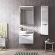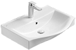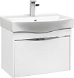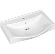 Широкий бортик под смеситель не дает воде затекать за раковину и предупреждает образование плесени и грибка. Передний край раковины выступает аккуратным полукругом за фасад тумбы и придает гарнитуру современный вид.