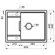 Дополнительные характеристики: экологически безопасный материал: нет никаких рисков для здоровья человека и окружающей среды, высокие шумоподавляющие свойства: вода падает в раковину очень тихо — в отличие от тех, что изготовлены из нержавеющей стали, высокая гигиеничность, так как на поверхности не накапливаются грибки и бактерии, продуманная геометрия раковины не позволяет каплям воды разбрызгиваться в стороны, имеются две метки под отверстия для смесителя/дозатора, возможность установки измельчителя, к изделию прилагается гарантия от производителя на 3 года.