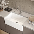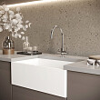 За счет наличия антибактериального покрытия можно не волноваться о размножении на поверхности опасных микроорганизмов. Мойка с выступающей лицевой частью устанавливается ниже уровня столешницы.