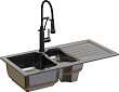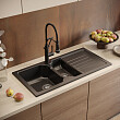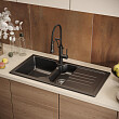 Черная встраиваемая мойка Domaci «Сиена 54100-110» поможет рационально оптимизировать пространство. В ней две чаши — большая, для мытья посуды, и маленькая, которую можно использовать для замачивания столовых приборов, разморозки или подогрева продуктов. Длинное крыло с желобками для стока воды оптимально для сушки. За счет оборачиваемости мойки оно может располагаться как справа, так и слева.