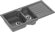 Для производства используется высокопрочная керамика. Она может похвастаться стойкостью к ударам, царапинам, тепловому и химическому воздействию. Водоотталкивающая поверхность в оттенке серого и черного «антрацит» неприхотлива в уборке. Защиту от микроорганизмов подарит антибактериальное покрытие.