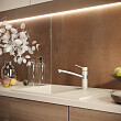 Специальные добавки в его составе обеспечивают антибактериальную защиту мойки. Крыло, ориентацию которого задают при установке, прорезают узкие канавки для стока воды. Также есть два намеченных отверстия под смеситель. Встраиваемая сверху мойка имеет хорошее оснащение — сифон, сливную арматуру, корзинчатый вентиль и набор крепежей.