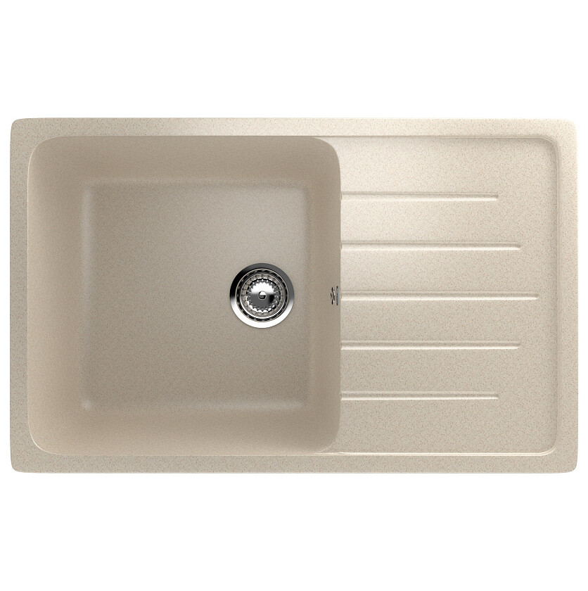 Бежевая кухонная мойка U-400-328 российского производителя Ulgran изготовлена из искусственного мрамора.