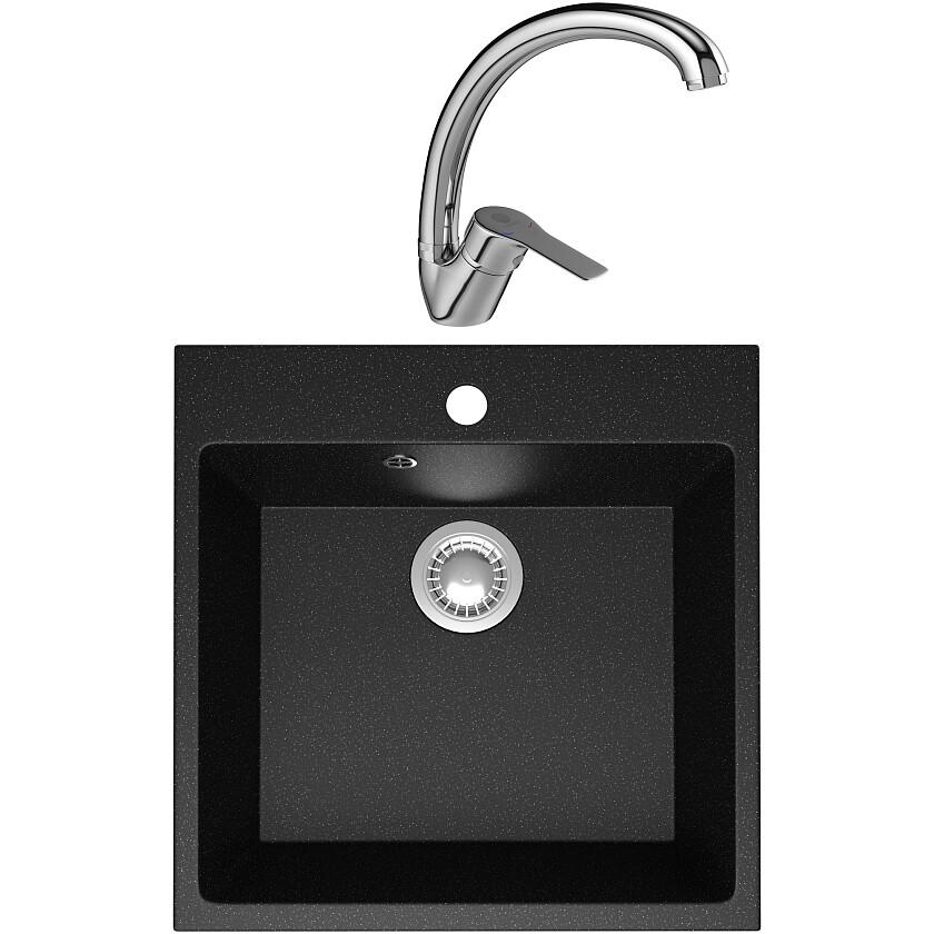 Мойка черная Domaci "Болонья" М-42-002 со смесителем "Равенна" D45-002cr