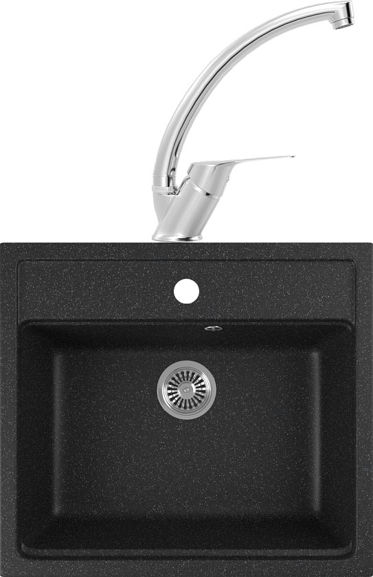 Комплект: Мойка кухонная Domaci Бьелла DMC-06 черная, встраиваемая, накладная, искусственный мрамор, прямоугольная, российская + Смеситель для кухни M