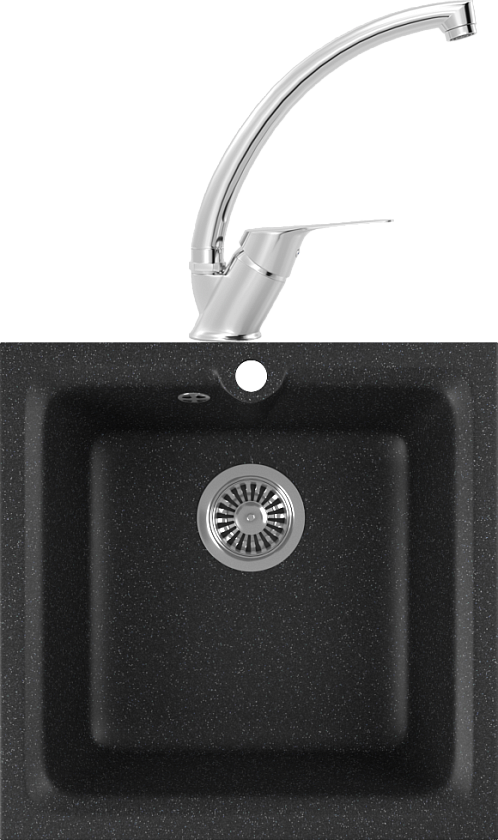 Комплект: Мойка кухонная Domaci Бьелла DMC-42 черная + Смеситель для кухни Mega MG-BMK016 хром