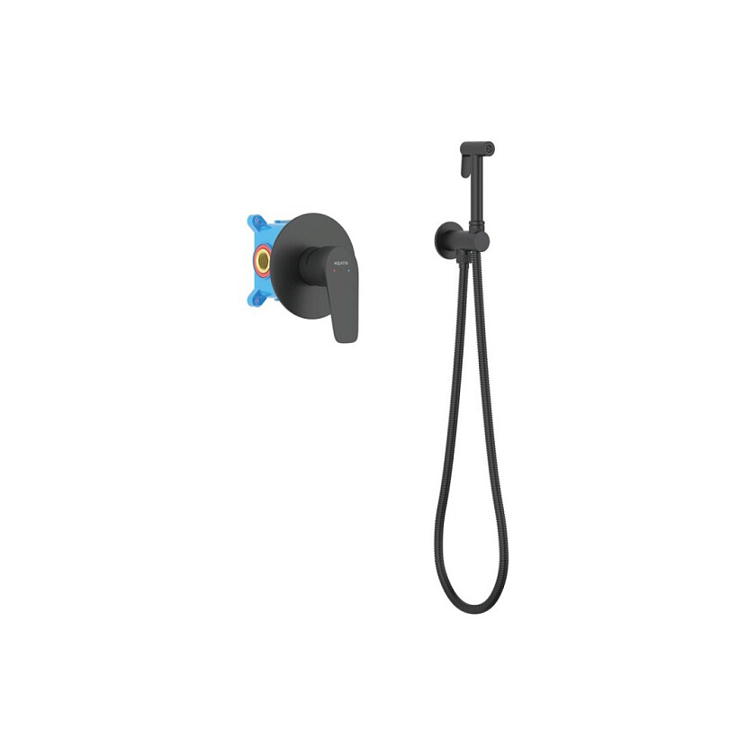 Набор с гигиеническим душем (смеситель + гигиеническая лейка + шланг + шланговое подсоединение с держателем) AQUATEK БЕТТА, матовый черный, AQ1119MB.