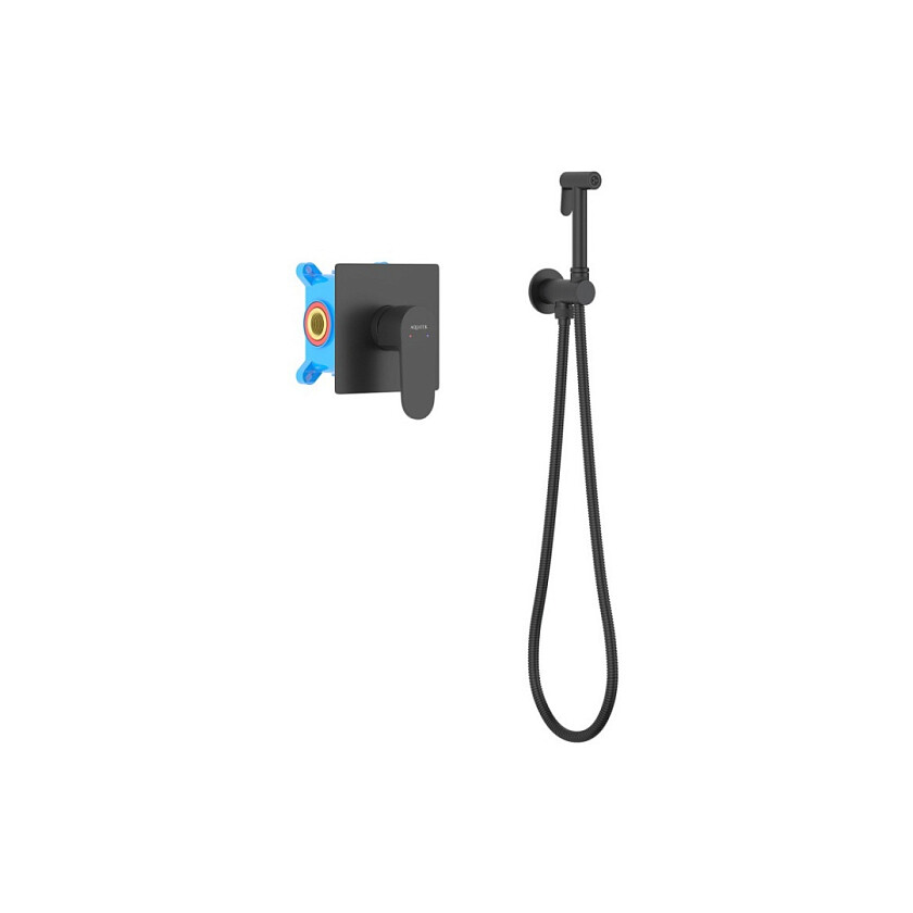 Набор с гигиеническим душем (смеситель + гигиеническая лейка + шланг + шланговое подсоединение с держателем) AQUATEK ОБЕРОН, матовый черный AQ1219MB.