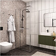 Прозрачное стекло, строгие линии, горизонтальное расположение ручки – в уголке продумана каждая деталь, чтобы сделать вашу ванную комнату эстетичной, а водные процедуры – комфортными. За счет квадратной формы внутри уголка достаточно просторно. Длинную ручку можно использовать как вешалку для полотенца.