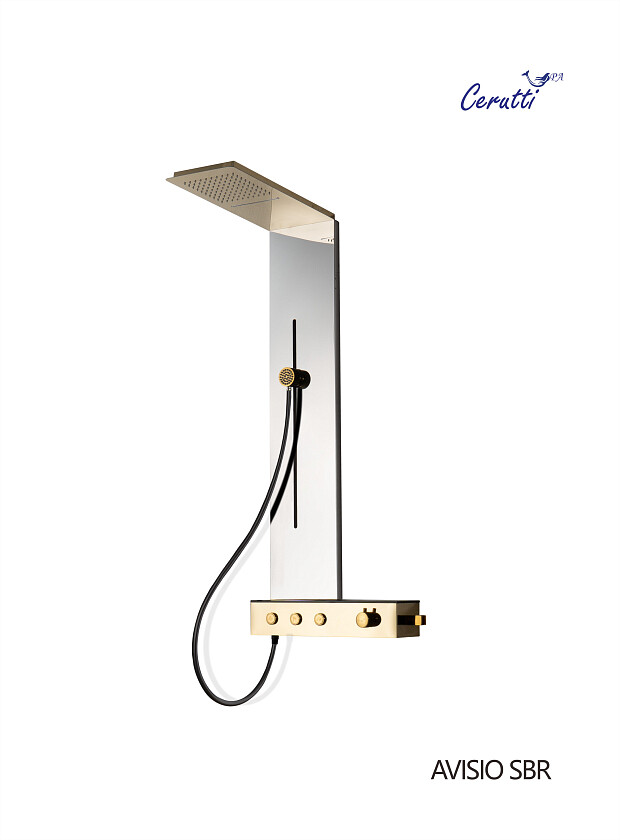 Душевая панель с тропическим душем 131х48 см серебро, бронза Cerutti SPA Avisio SBr CT9658 - изображение 1