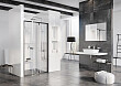 Двухэлементные душевые двери помогут создать удивительно просторную душевую зону в нише шириной 100, 110 или 120 см. Профили с тремя видами покрытия впишутся в любой стиль ванной комнаты.