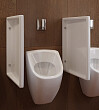 Подвесной писсуар – это компактное изделие, которое имеет чашу, систему инсталляции, но не имеет опоры. Конструкция надежно крепиться к стене, а сливная система находится в стенном проеме.
