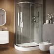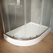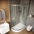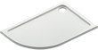 У прямоугольных-асимметричных поддонов, как правило, длина превышает ширину и фронтальный угол конструкции (не присоединяемый к стене) обладает округлой формой.