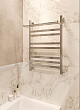Водяной полотенцесушитель Ewrika “Деметра” КВ7 80х50 — секрет функционального интерьера. В модели подкупает наличие полки и продуманный дизайн, построенный на идеальной геометрии. Семь прямоугольных перекладин разделены на группы для удобной сушки белья. Трубы из хромированной нержавеющей стали соединены электросварным швом, что гарантирует долгую и надежную работу прибора. Чтобы первый пуск был успешным, воспользуйтесь встроенным краном Маевского для стравливания воздуха.