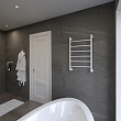 Такой полотенцесушитель позволяет создать и минималистичный белый дизайн (разбавленный, при желании, яркими аксессуарами), и стильный ультрамодный лофт.