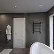 Черный матовый полотенцесушитель Ewrika Сафо P 80х50 использует в качестве теплоносителя воду, работая от системы отопления или горячего водоснабжения. Благодаря этому он не расходует электроэнергию и его не нужно включать или выключать: температуру он поддерживает постоянно и автоматически.