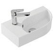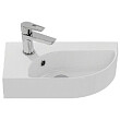 Компактная угловая раковина с закругленными углами и плавной линией контура шириной 45 см выпускается в левостороннем и правостороннем вариантах.
