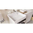 Раковина Reflexion Alpha спроектирована специально для установки над стиральной машинкой. Она имеет неглубокую чашу и горизонтальный слив. Благодаря ему умывальник из искусственного мрамора для ванной комнаты отводит воду в сифон, который проходит позади стиральной машины. Это защищает технику от случайных утечек.