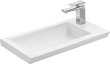 Накладная раковина представляет собой чашу, которая располагается на горизонтальной поверхности. Изделие с плоским дном не заглубляется в тумбочку или столешницу, а просто накладывается сверху. При взгляде на такую раковину может казаться, что ее легко сдвинуть. Но на самом деле она крепко прикреплена.