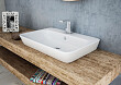 Накладная раковина представляет собой чашу, которая располагается на горизонтальной поверхности. Изделие с плоским дном не заглубляется в тумбочку или столешницу, а просто накладывается сверху. При взгляде на такую раковину может казаться, что ее легко сдвинуть. Но на самом деле она крепко прикреплена.