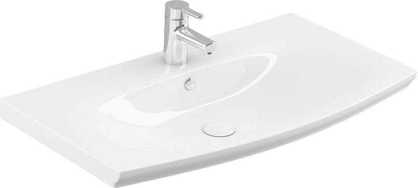 Изделие с плоским дном не заглубляется в тумбочку или столешницу, а просто накладывается сверху.