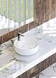 Накладная раковина представляет собой чашу, которая располагается на горизонтальной поверхности. Изделие с плоским дном не заглубляется в тумбочку или столешницу, а просто накладывается сверху. При взгляде на такую раковину может казаться, что ее легко сдвинуть. Но на самом деле она крепко прикреплена.