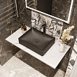Накладная раковина представляет собой чашу, которая располагается на горизонтальной поверхности. Изделие с плоским дном не заглубляется в тумбочку или столешницу, а просто накладывается сверху. При взгляде на такую раковину может казаться, что ее легко сдвинуть. Но на самом деле она крепко прикреплена.