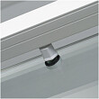 Система отстегивания душевых дверей, дает возможность легкого ухода за всеми деталями изделия. Достаточно нажать кнопку на нижних роликах с внешней стороны душевого уголка и отодвинуть дверь от профиля во внутрь.