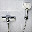 Смеситель для ванны имеет автоматический кнопочный переключатель. Он работает при давлении от 0,3 Бар. Переключатель дополнительно оснащен поворотным механизмом ручной фиксации для использования в местах со слабым напором воды.