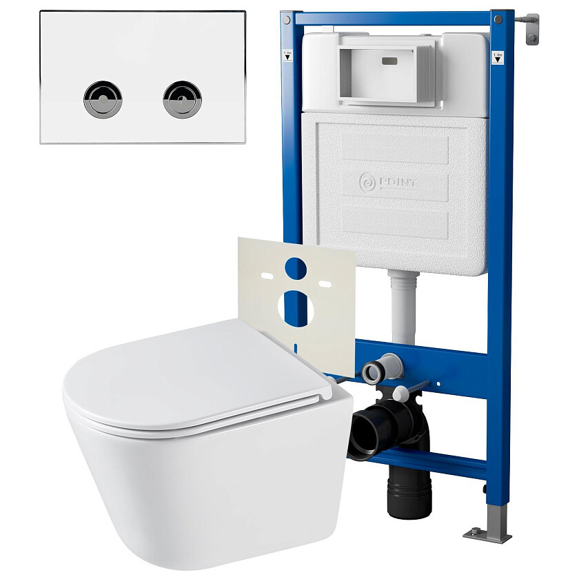 3. Унитаз подвесной Point Венера безободковый, белый, сиденье дюропласт микролифт быстросъемное PN41071