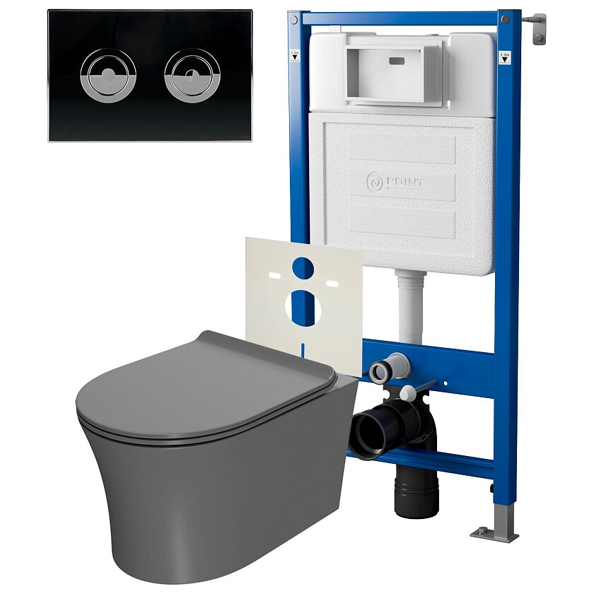 3. Унитаз подвесной Point Вега безободковый, серый матовый, PN41711GM